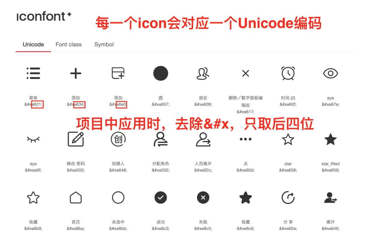打开demo_index.html预览iconFont所对应的Unicode编码。并在项目中应用。