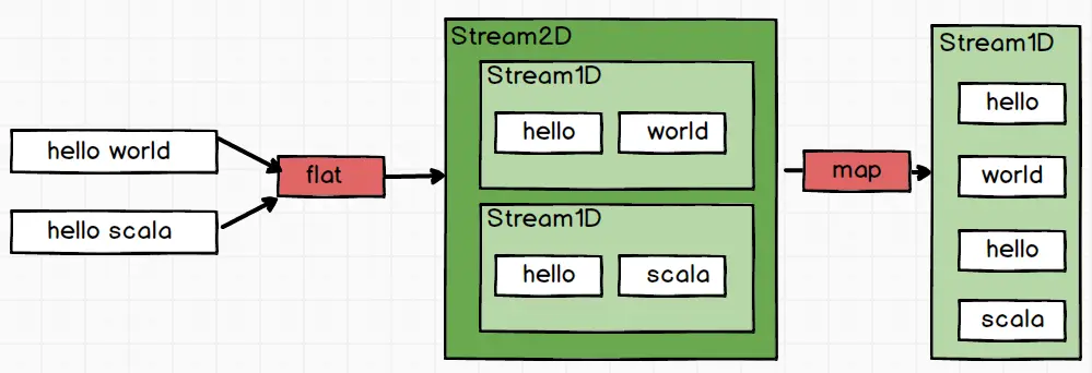 stream2D = Stream{Stream{“hello”,”world”},Stream{“hello”,”scala”}}