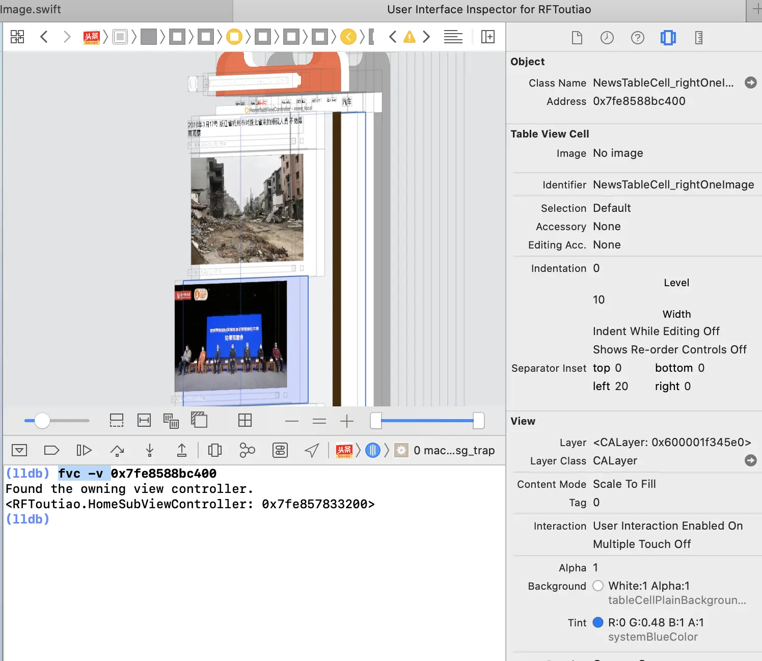 | | <RFToutiao.HomeViewController 0x7fe85740fbb0>, state: appeared, view: <UIView 0x7fe857714720>