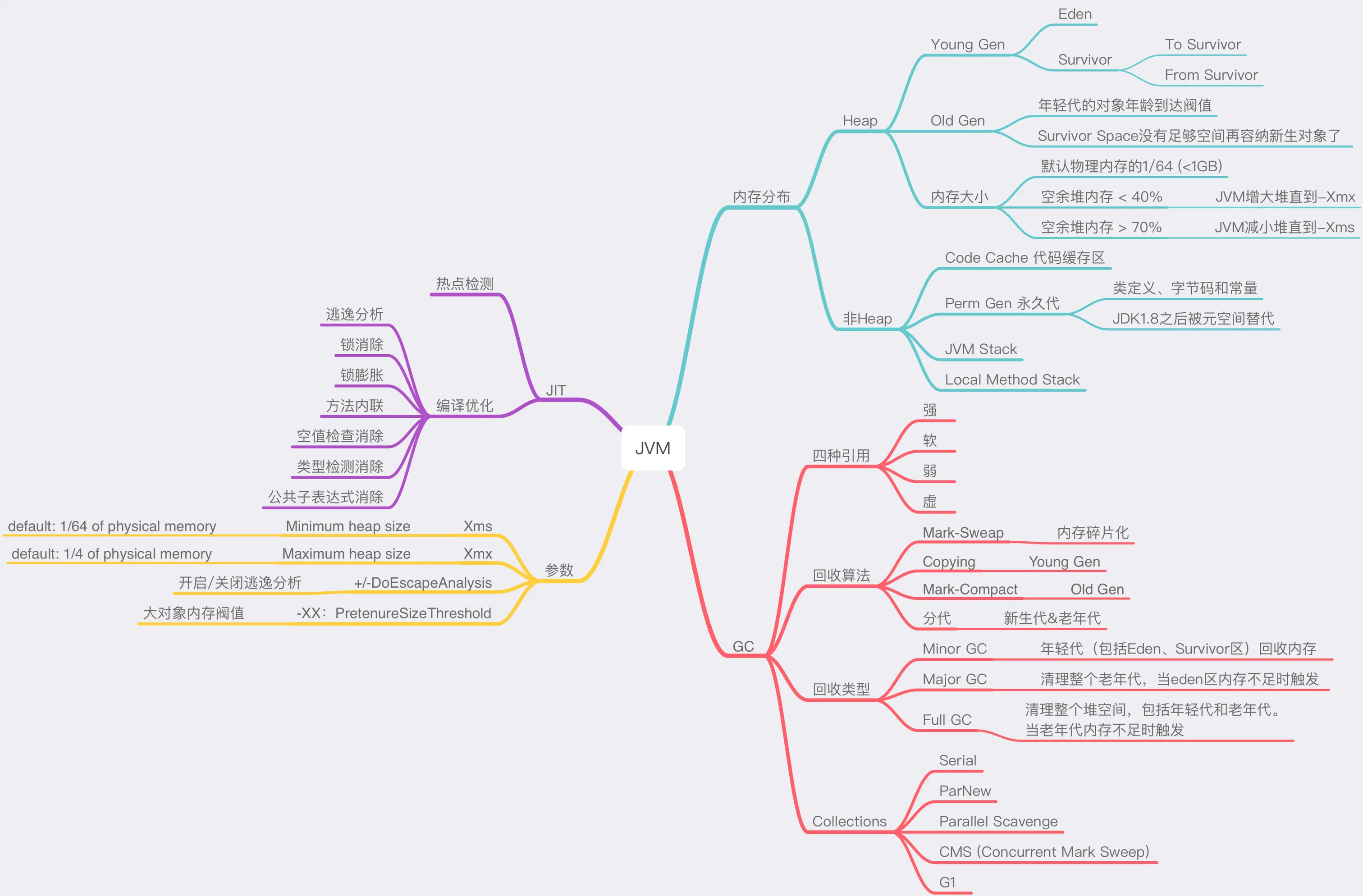 现代商用虚拟机基本都采用分代收集算法来进行垃圾回收。其实是上面几种算法的结合。
