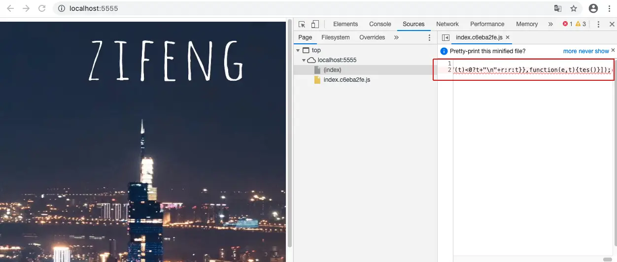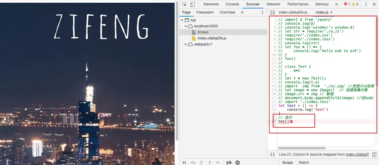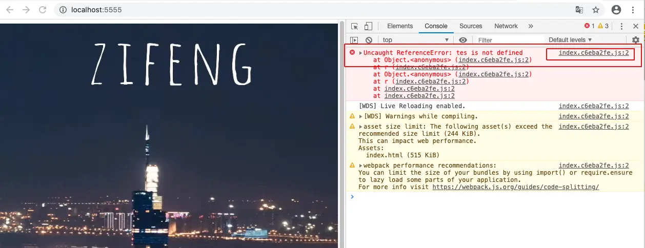 npm run dev,浏览器点击index.js看看效果,准确的给出了错误位置。