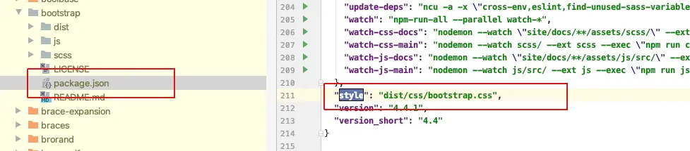 可以看出默认引用bootstrap/dist/js文件,当然我们也可以写成import 'bootstrap/dist/css/bootstrap.css',编译没什么问题了,但是非常的不友好!我们看bootstrap中package.json中style