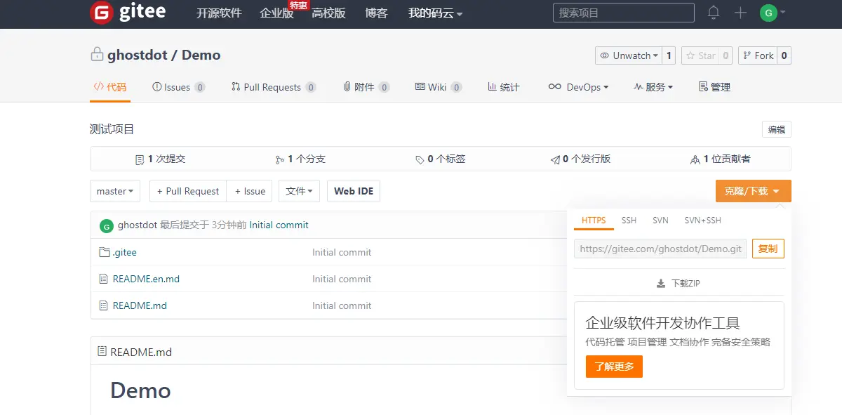 git remote add gitee https://gitee.com/ghostdot/Demo.git