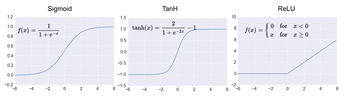 激活函数是目前人工神经网络的核心组成部分之一,其作用是进行人工神经网络的非线性化。我们首先回顾一些最为常见的激活函数,包括Sigmoid激活函数、Tanh激活函数和ReLU激活函数,分别如图所示。