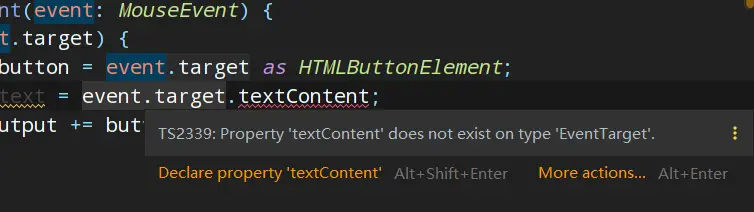 - 强制类型,因为vue和ts结合的不是很好,比如在vue的模板中的一个按钮上写事件,下面的ts代码并不知道监听的是什么元素,所以ts会不知道event.target到底有没有textcontent