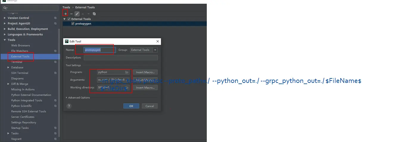 如何把protobuf一键生成所需的py文件,可以在pycharm中配置external tools