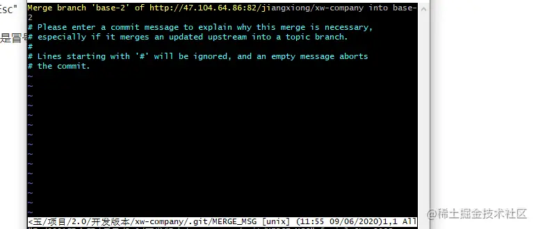 报错问题:git中Please enter a commit message to explain why this merge is necessary.