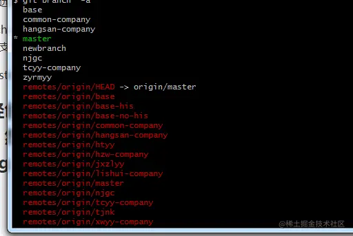 这里面的分支红色的是指本地的远端的分支,白色的指的是本地的本地的分支,如果远端建立一个新的分支的话,红色不会自动添加上新的分支,所以需要git pull 执行这个命令之后所有的分支就可以显示了,然后在执行git checkout -b base origin/base,就可以建立本地的分支并连接上远程的分支