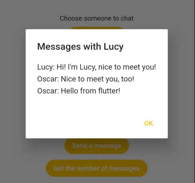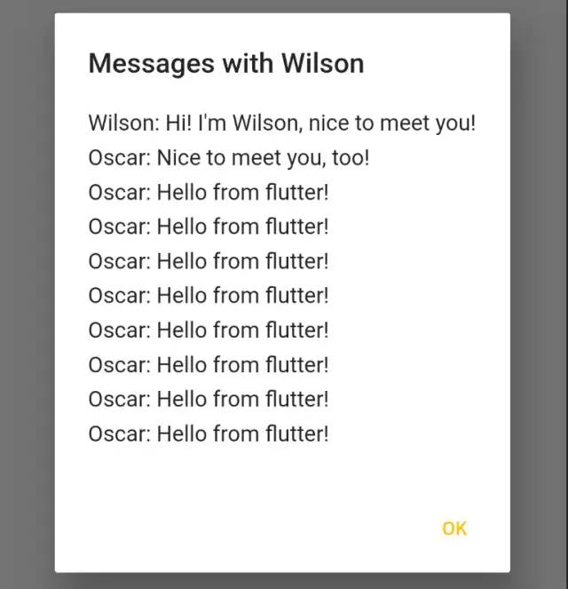 我做了一个Demo,模拟了一个在Android侧依赖了IM(即时通讯)SDK,需要在Flutter侧聊天、获取消息、发消息的场景。以下是Demo的截图: