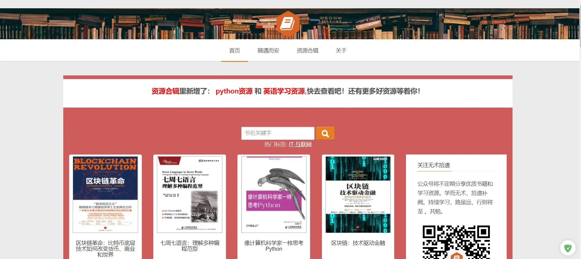 该网站书不是很全,但是一个最大的特点就是更新快,还有推送服务 因为中国人平均每年读书数量和时间在全球范围内都属于垫底的,所以书伴推出了「每周一书」栏目, 每周推荐一本最值得一读的书,免费下载,主要是为了鼓励大家利用碎片的时间进行阅读,培养良好的阅读习惯。