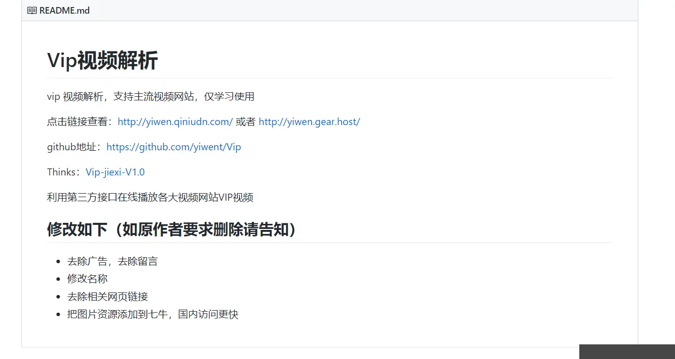 github地址:github.com/yiwent/Vip 深漂鱼网站:yiwen.qiniudn.com/ 支持各大视频VIP视频1080P视频播放 解析之后没有播放,那就把进度条往前点击一下,暂停键点击两下,换一下线路,基本上就没事了