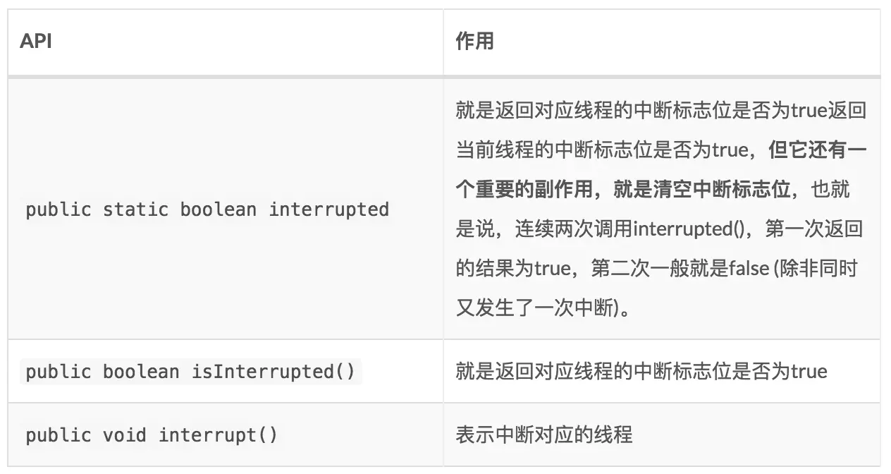 1. 以上,我们可以看出,interrupt方法不一定会真正”中断”线程,它只是一种协作机制,如果 不明白线程在做什么,不应该贸然的调用线程的interrupt方法,以为这样就能取消线程。