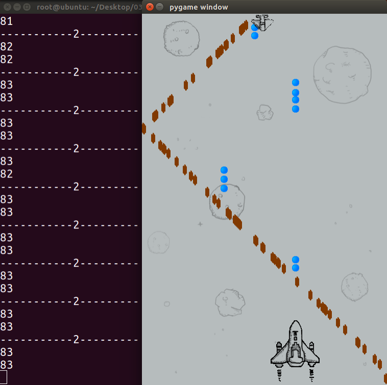 001 002 003 004 005 006 007 008 009 010 011 012 013 014 015 016 017 018 019 020 021 022 023 024 025 026 027 028 029 030 031 032 033 034 035 036 037 038 039 040 041 042 043 044 045 046 047 048 049 050 051 052 053 054 055 056 057 058 059 060 061 062 063 064 065 066 067 068 069 070 071 072 073 074 075 076 077 078 079 080 081 082 083 084 085 086 087 088 089 090 091 092 093 094 095 096 097 098 099 100 101 102 103 104 105 106 107 108 109 110 111 112 113 114 | #coding=utf-8import pygamefrom pygame.locals import * ''' 6. 显示敌人飞机''' class HeroPlane(object): def __init__(self,screen): #设置飞机默认的位置 self.x = 230 self.y = 700 #设置要显示内容的窗口 self.screen = screen self.imageName = "./feiji/hero1.png" self.image = pygame.image.load(self.imageName) #用来存储英雄飞机发射的所有子弹 self.bulletList = [] def display(self): self.screen.blit(self.image,(self.x,self.y)) for bullet in self.bulletList: bullet.display()#显示一个子弹的位置 bullet.move()#让这个子弹进行移动,下次再显示的时候就会看到子弹在修改后的位置 def moveLeft(self): self.x -= 10 def moveRight(self): self.x += 10 def sheBullet(self): newBullet = Bullet(self.x, self.y, self.screen) self.bulletList.append(newBullet) class Bullet(object): def __init__(self,x,y,screen): self.x = x+40 self.y = y-20 self.screen = screen self.image = pygame.image.load("./feiji/bullet.png") def move(self): self.y -= 5 def display(self): self.screen.blit(self.image,(self.x,self.y)) class EnemyPlane(object): def __init__(self,screen): #设置飞机默认的位置 self.x = 0 self.y = 0 #设置要显示内容的窗口 self.screen = screen self.imageName = "./feiji/enemy0.png" self.image = pygame.image.load(self.imageName) def display(self): self.screen.blit(self.image,(self.x,self.y)) def key_control(heroPlane): #判断是否是点击了退出按钮 for event in pygame.event.get(): # print(event.type) if event.type == QUIT: print("exit") exit() elif event.type == KEYDOWN: if event.key == K_a or event.key == K_LEFT: print('left') heroPlane.moveLeft() #控制飞机让其向左移动 elif event.key == K_d or event.key == K_RIGHT: print('right') heroPlane.moveRight() elif event.key == K_SPACE: print('space') heroPlane.sheBullet() def main(): #1. 创建一个窗口,用来显示内容 screen = pygame.display.set_mode((480,852),0,32) #2. 创建一个和窗口大小的图片,用来充当背景 background = pygame.image.load("./feiji/background.png") #3.1 创建一个飞机对象 heroPlane = HeroPlane(screen) #3.2 创建一个敌人飞机 enemyPlane = EnemyPlane(screen) #4. 把背景图片放到窗口中显示 while True: screen.blit(background,(0,0)) heroPlane.display() enemyPlane.display() key_control(heroPlane) pygame.display.update() if __name__ == "__main__": main() |