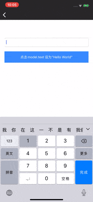 - View.textField 跟 ViewModel.text 绑定,用户在输入框textField输入"Hello World",text也会响应式更新,此时text = @"Hello World", 我们只要对text进行处理