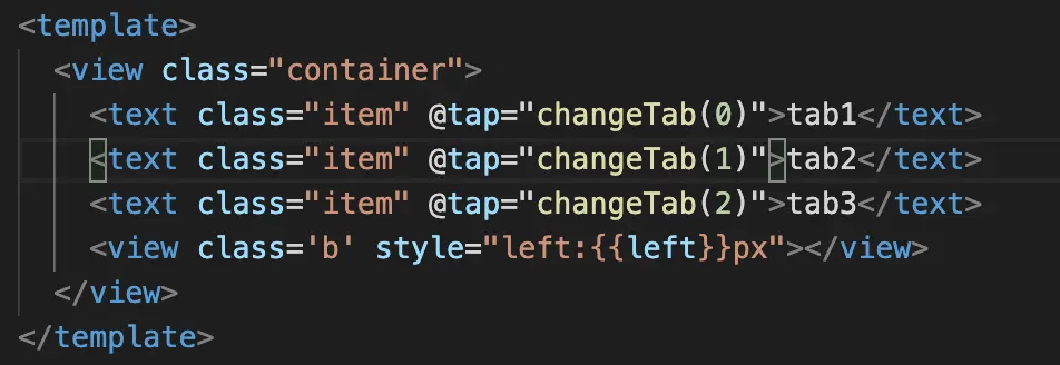 这个下滑线元素通过position:absolute;脱离了文档流,通过template中的内联样式left来定位这个元素距离父元素左边框的距离,而且可以通过transition属性来对当前元素的left属性变化做一个动画。