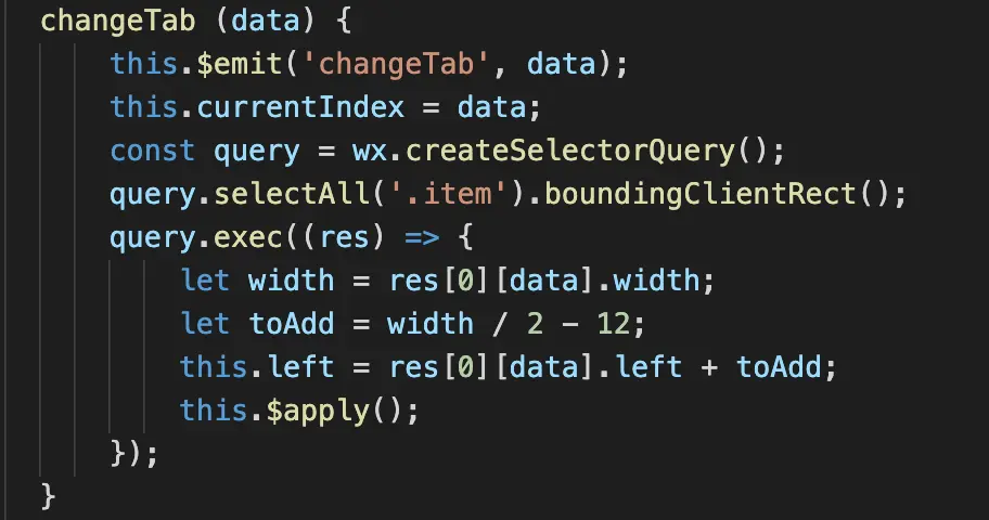 在上面提到了通过left属性来控制下划线距离父元素左边框的距离,那么是如何计算的呢?由于客户端的屏幕尺寸不同,我们在做响应式布局的时候,每个tab在不同大小的屏幕上的长度也不同,所以我们在tab选中变化时通过获取到每个.item元素的左边框位置和tab宽度来确定我们下划线左边距离父元素左边框的位置。