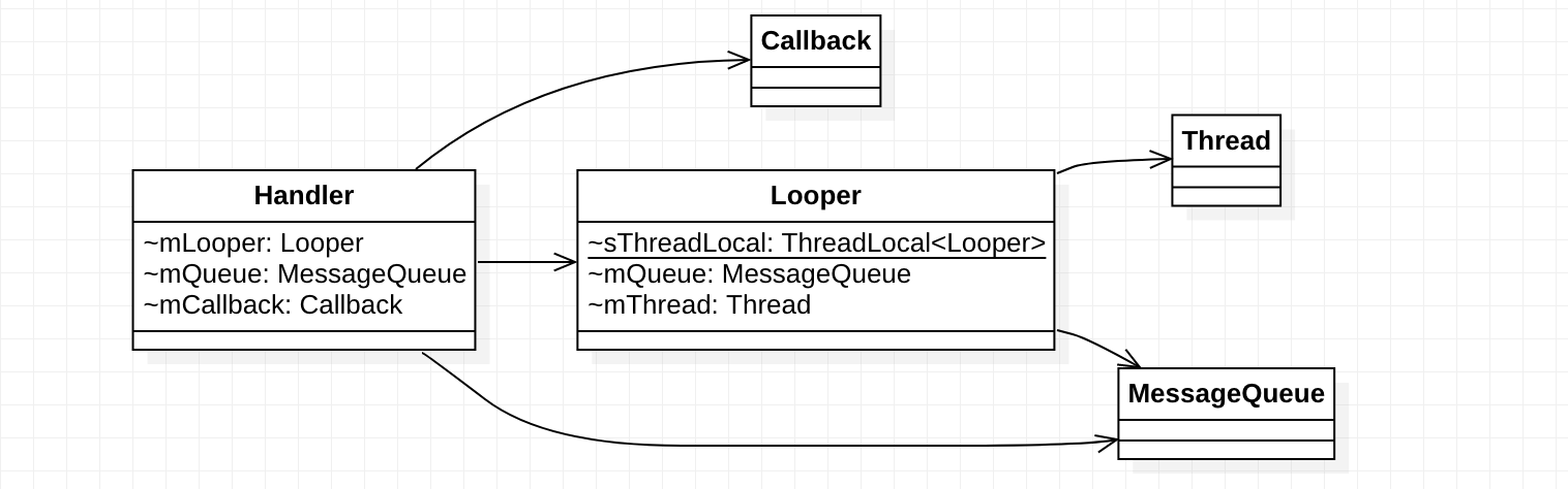 通过类图我们发现: Looper与Thread、MessageQueue的关系