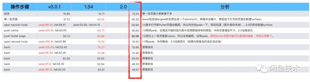 在页面管理方案升级之后,白屏和黑屏问题解决了,世界就应该安静了。但我们继续做了深入的内存及稳定性治理,发现新版本在iOS下每个新的VC打开的时候虽然没有了内存飙涨的peak,但每个新页面会带来约10M内存的增量。拿FlutterBoost的官方demo做了测试,1.54这个版本就是升级后的原始版本:这个内存增量是因为什么导致的?我们升级前后内存变化做了分析,如下图(左边是升级前,右边是升级后):