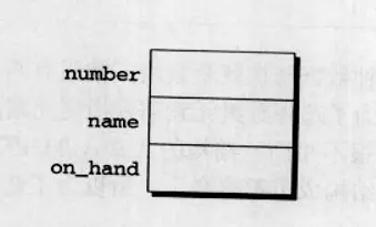 每个结构变量都有3个成员:number(零件的编号)、name(零件的名称)和on_hand(现有数量)。