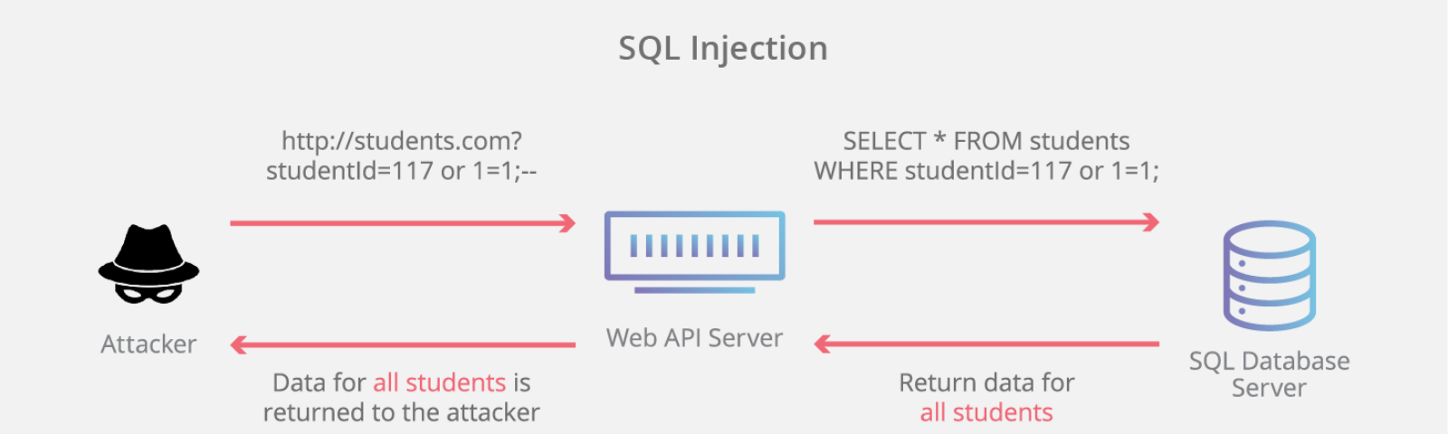 SQL注入攻击的核心在于让Web服务器执行攻击者期望的SQL语句,以便得到数据库中的感兴趣的数据或对数据库进行读取、修改、删除、插入等操作,达到其邪恶的目的。