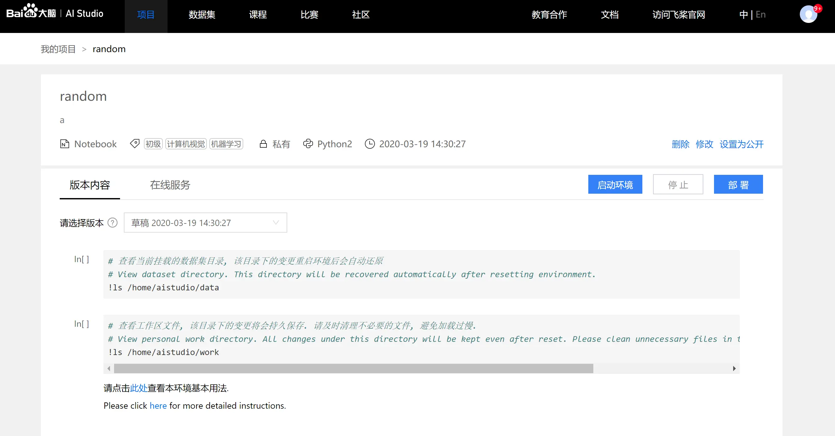 - 每次重新打开项目,项目会重新加载/home/aistudio/下的所有文件,如果网络信号不好,可能会加载失败,请寻找一个信号好的位置,加载完毕后则没关系。
