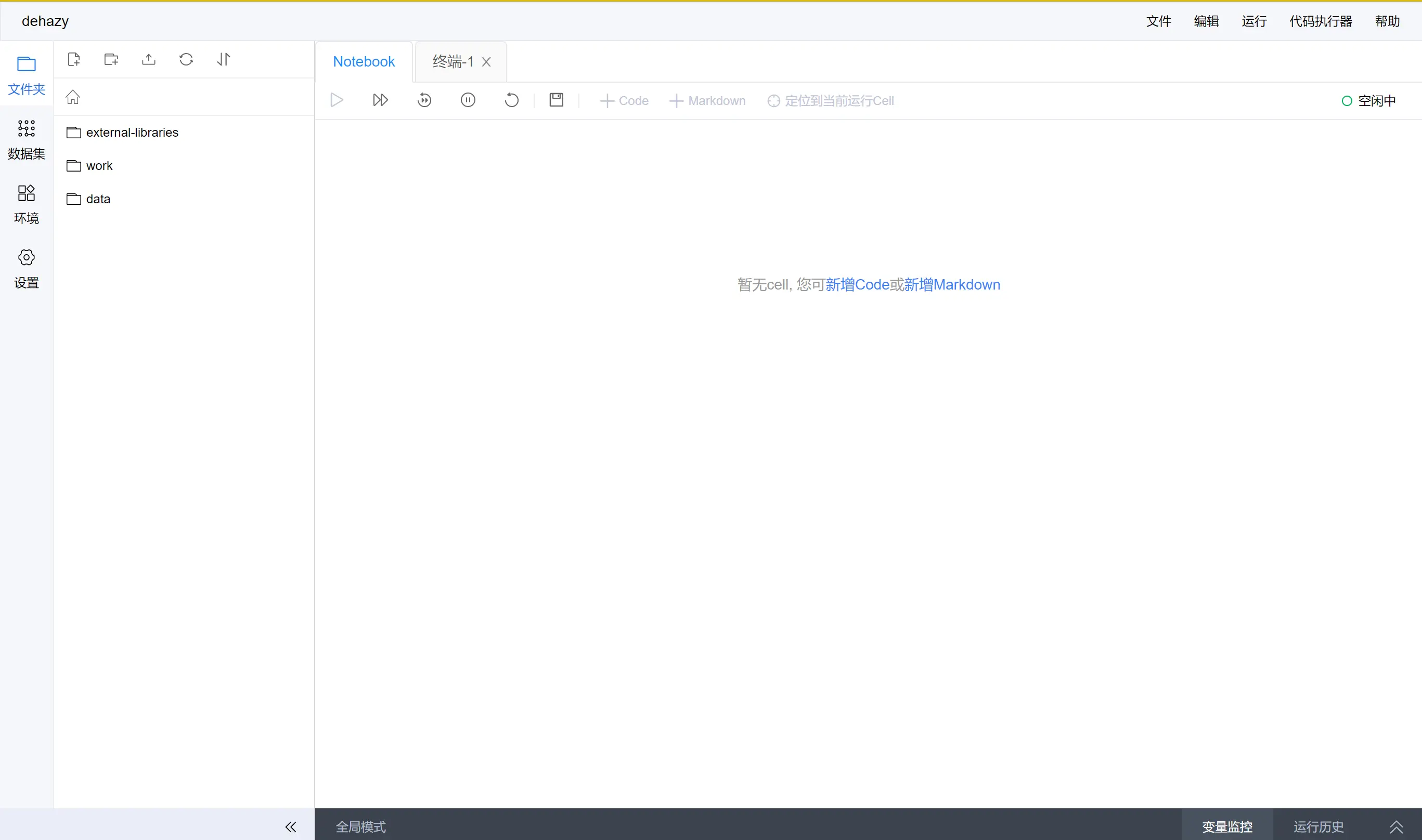 在进入项目后,可以进入到data目录下看到自己挂载的数据集。