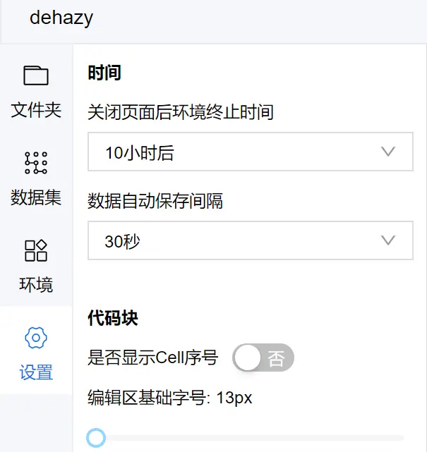 - 训练中请勿关闭当前网页,在项目内的设置内可以看到,关闭网页后环境会终止。