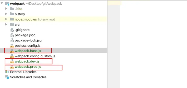基于前面的项目配置,这边建三个文件对webpack.config.custom.js进行拆分与不同js文件变量的合并。