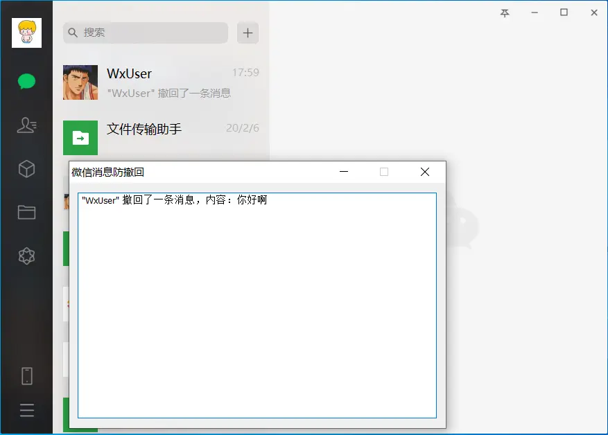 我们看一下效果图,撤回的消息被我们看到了,相当于防(防止)撤回