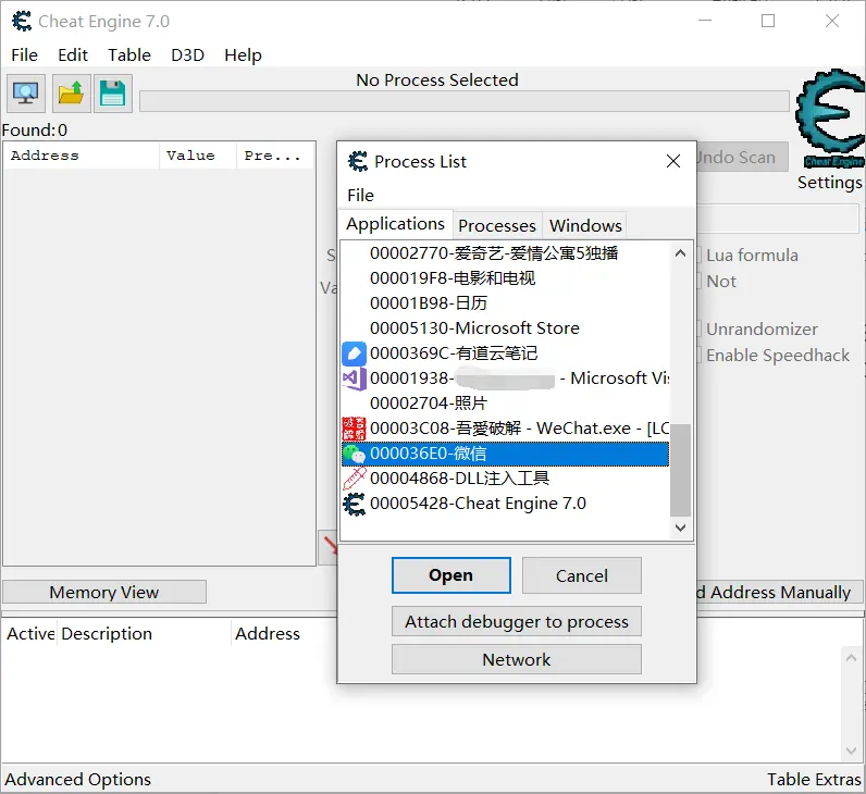 用CE打开微信进程