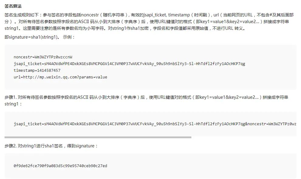 * 确保你获取用来签名的url是动态获取的--因为页面一旦分享,微信客户端会在你的链接末尾加入其它参数,如果不是动态获取当前链接,将导致分享后的页面签名失败(就是为什么二次分享失败的原因)