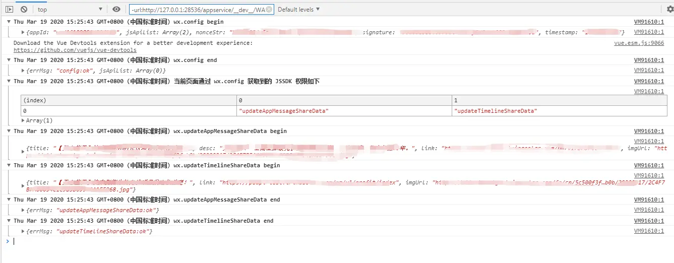 // 开启调试模式,调用的所有api的返回值会在客户端alert出来,若要查看传入的参数,可以在pc端打开,参数信息会通过log打出,仅在pc端时才会打印。发布请改成false