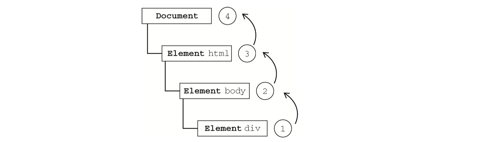 上面代码中会先后弹出3次alter弹窗,顺序分别为1、2、3。也就是说,click事件首先在<div>元素上发生,而这个元素就是我们单击的元素。然后,click 事件沿DOM树向上传播,在每一级节点上都会发生,直至传播到document对象。