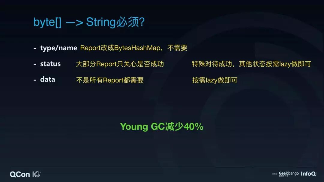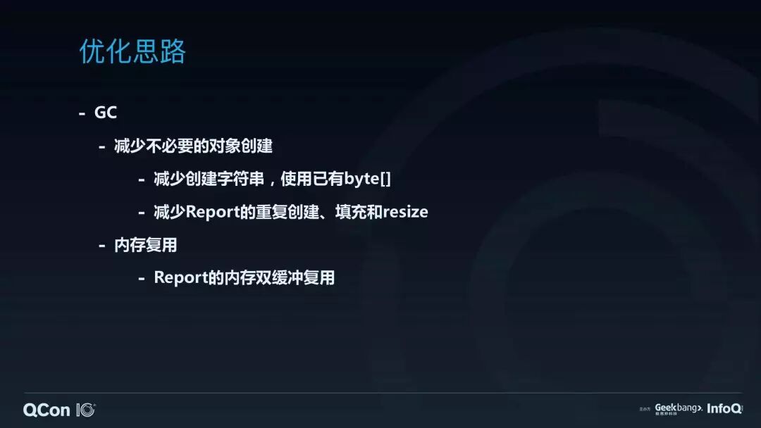 对于 GC 问题,根本上应该是要减少不必要对象的创建。这几个案例里面,第一个是减少了创建字符串,直接复用字节流。还有就是案例里面通过复用内存减少了报表的重复创建、填充还有 resize。