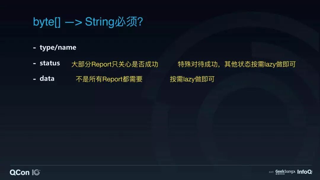 那么就要看,刚刚分析出来这几个字符串字段是不是都需要做这样的一个反序列化操作。首先看 data,data 我们可以把它简单理解成 Transaction 和 Event 的一个附加信息。大部分时候我们的报表分析其实根本不关心这个附加信息,附加信息一般都是用来给用户查问题的时候,他点开这个 MessageTree 去看,但实时分析大部分情况不会用到的。所以这个 data 我们是完全可以按需的解开就好了。
