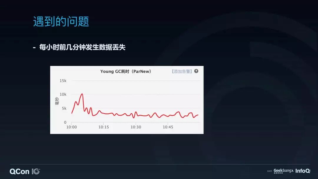 随着流量又进一步继续增加,我们发现一个比较奇怪的现象——每个小时切换的前几分钟都会发生一定的监控数据丢失。