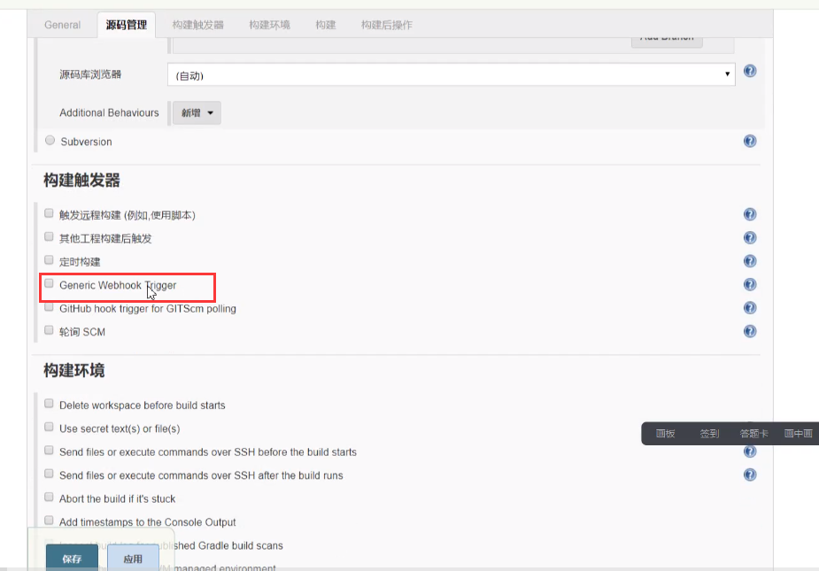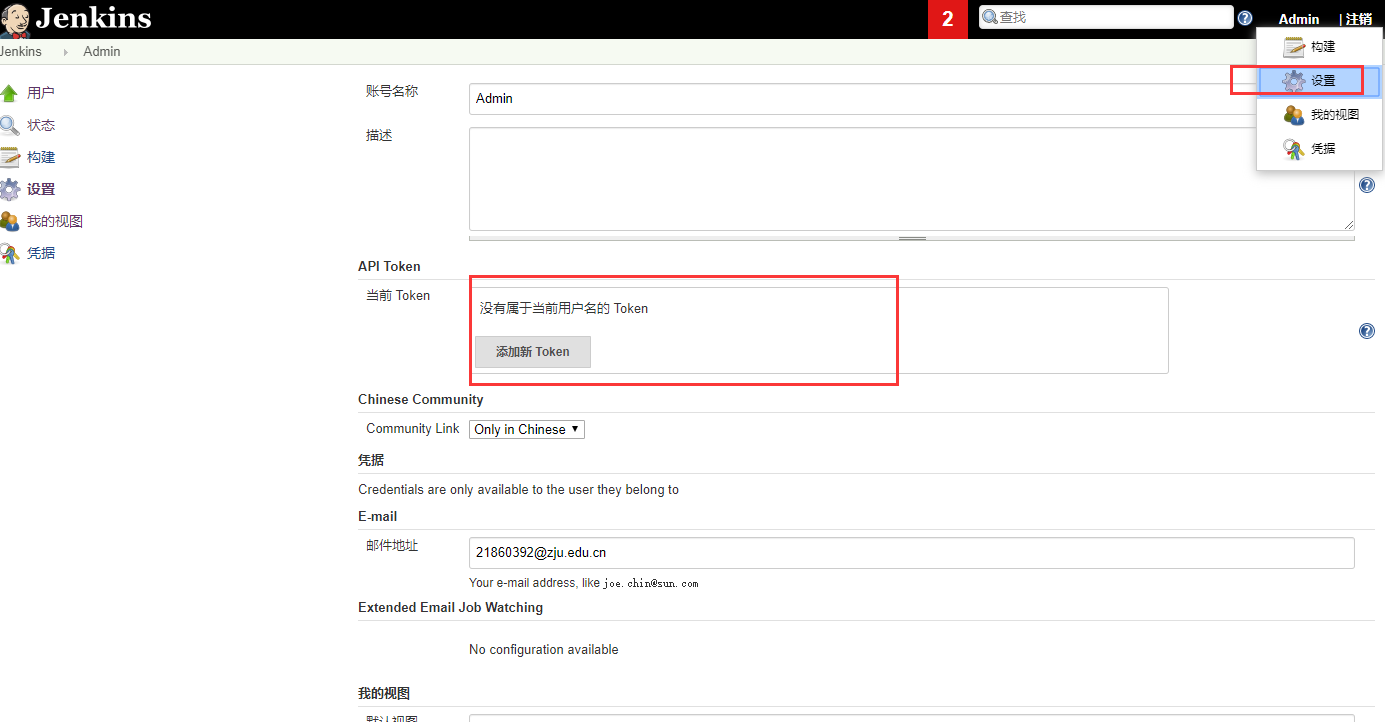 (在jenlinsde设置中,找到 API Token 选项,点击添加,会自动生成token,保存这个token备用,在项目设置中,找到构建触发器,勾选上 webhook Trigger)