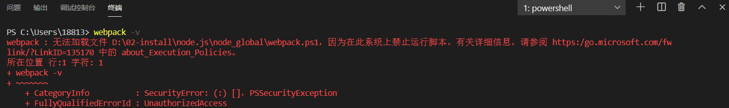 VC code 禁止运行脚本解决办法 去追光 2020-03-19 244 阅读1分钟 问题:在VC code上不能运行webpack -v。 原因:主要是由于没有权限执行脚本,PowerShell的默认设置执行策略为 Restricted,即不允许任何脚本运行。 而AllSigned 和 RemoteSigned 执行策略可防止 Windows PowerShell 运行没有数字签名的脚本。 解决办法: 查看:get-executionpolicy 设置:et-executionpolicy remotesigned