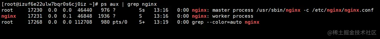 如果出现了一下三条记录,那就说明Nginx成功启动了
