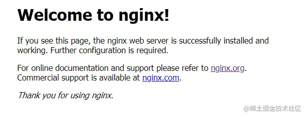 不出意外的话,我们会看到下列信息。出现下列信息之后,说明我们成功地访问了Nginx服务。