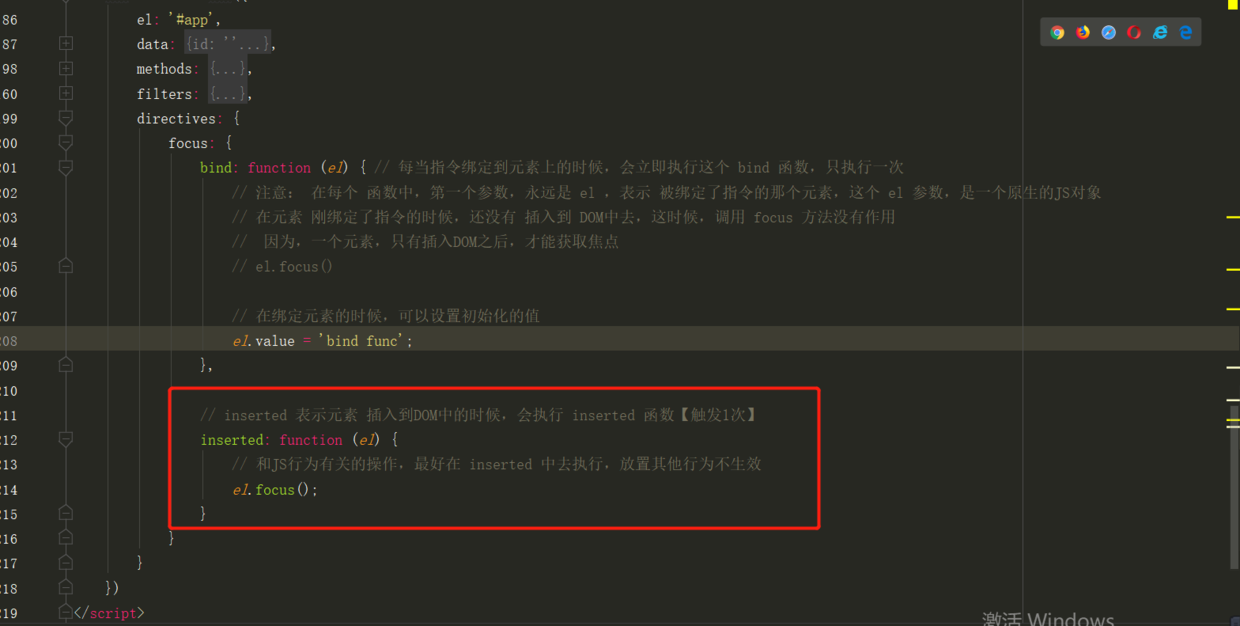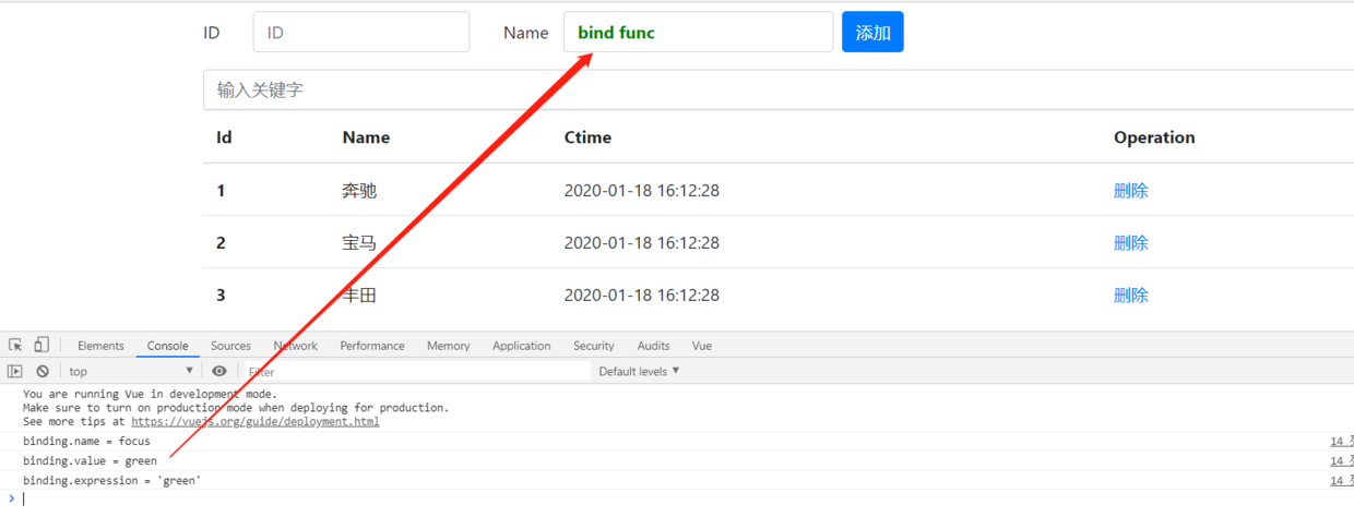 可以从页面看到,输入框既执行了bind方法,也执行了inserted方法。
