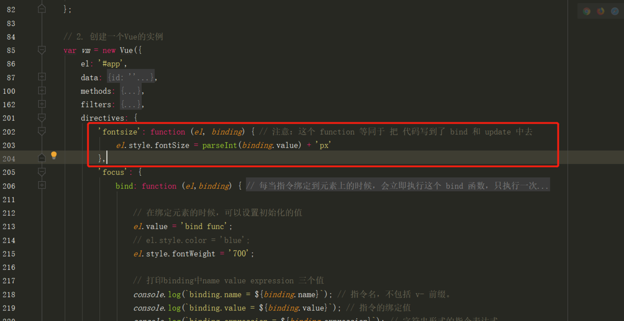 'fontsize': function (el, binding) { // 注意:这个 function 等同于 把 代码写到了 bind 和 update 中去