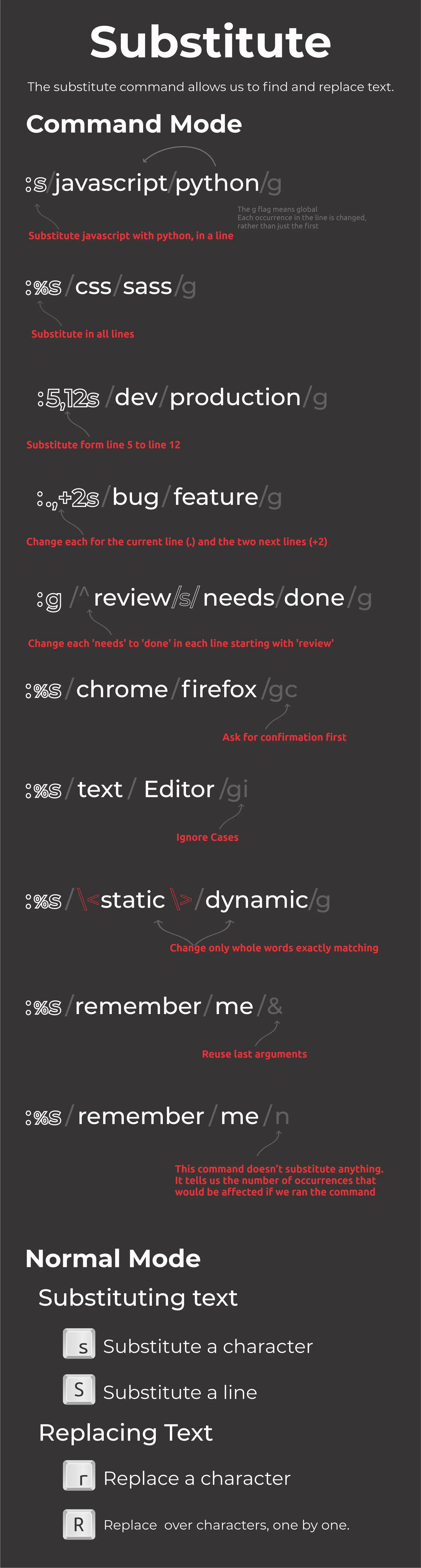 对于替换当前打开文件中的文本,vim提供如下语法: