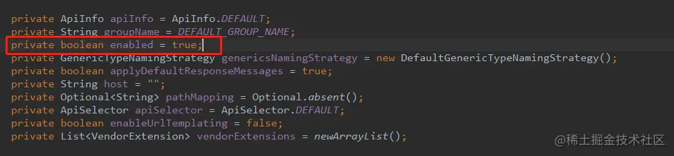 /** * 设置是否显示接口文档 */ @Value("${swagger.enable}") private boolean enable;