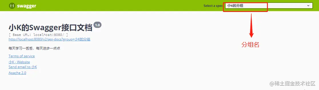 return new ApiInfo("小K的Swagger接口文档",
