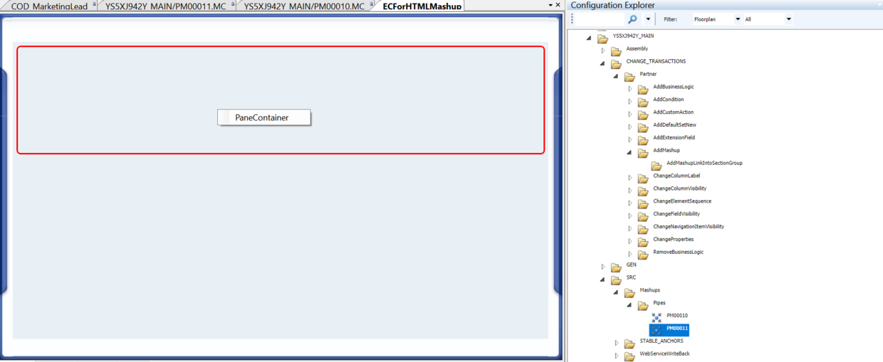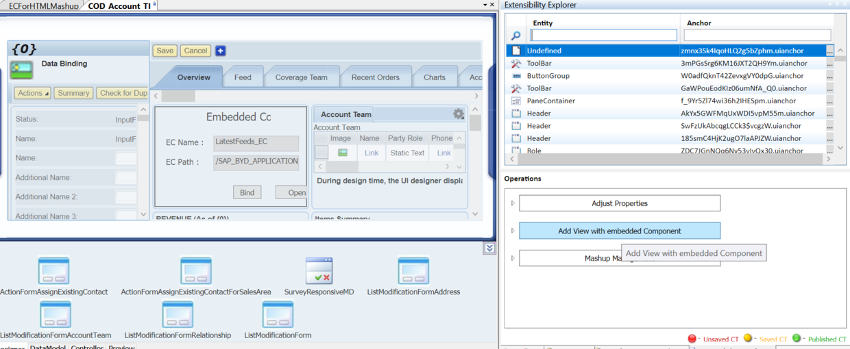 使用Extensibility explorer将mashup插入到Account TI页面上,生成一个change Transaction: