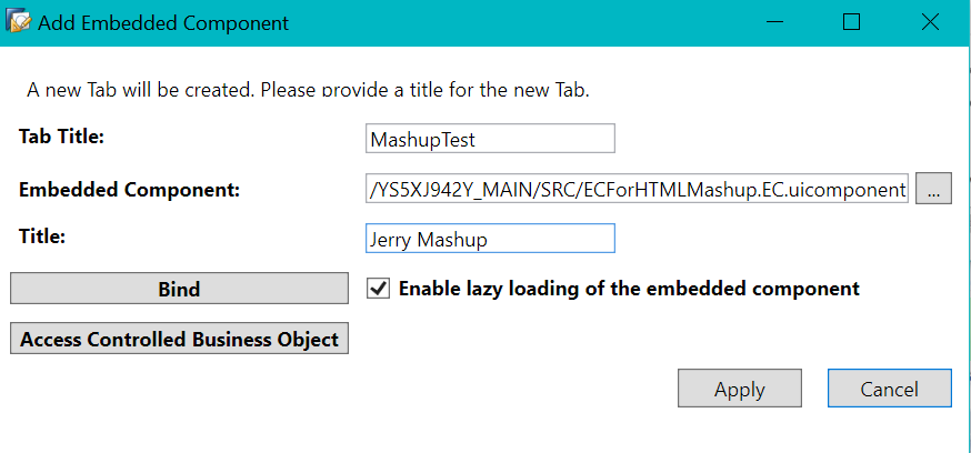 创建一个新的embedded component,将之前创建的HTML mashup拖拽到embedded component里: