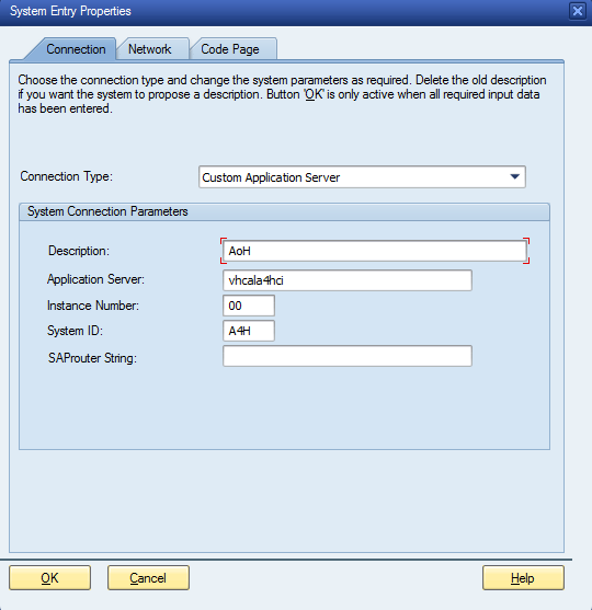 在SAPGUI里新建一个entry,维护hosts文件里添加的主机名,即可连接: