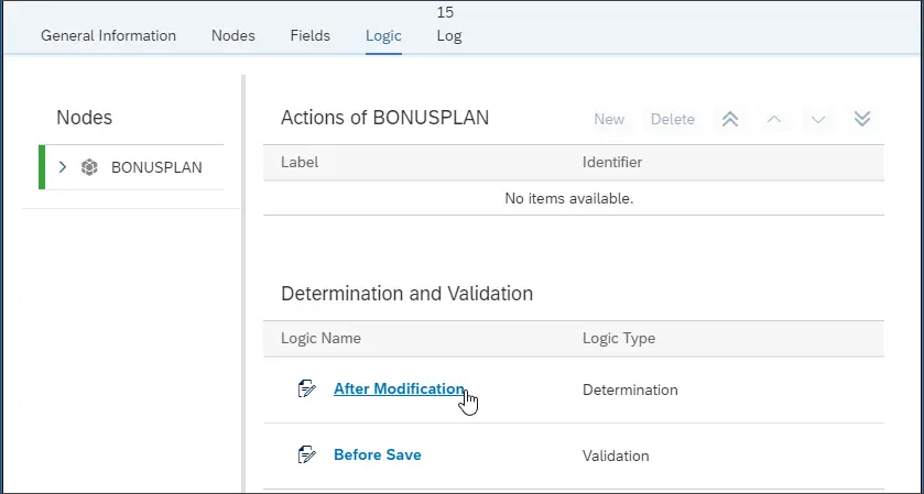 如果想用ABAP编程的方式实现自定义逻辑,在General information区域选择determination and validation: